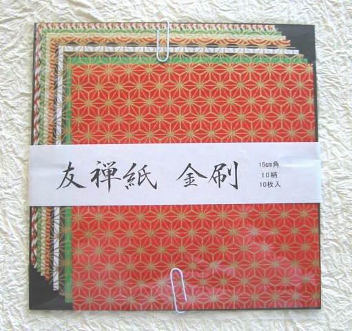 This is a handmade Yuzen Washi Origami pack containing 10 different